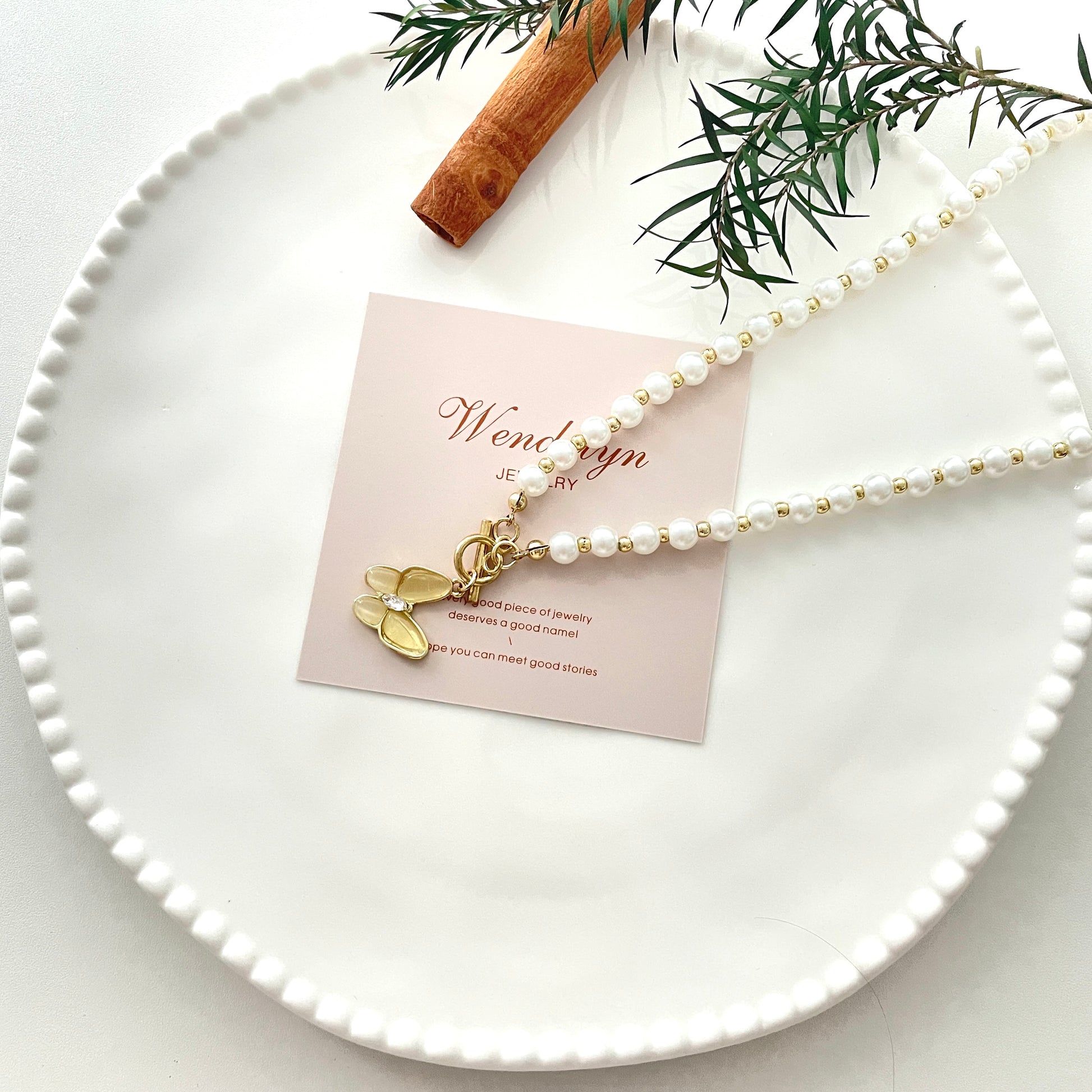 Golden Butterfly Pearl OT Necklace